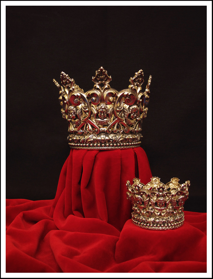 Coronas de plata en su color, reproducción de las antiguas desaparecidas. Donadas por José Ramón Gómez Tinoco y su familia. Realizadas en 2008 por Ramón León.